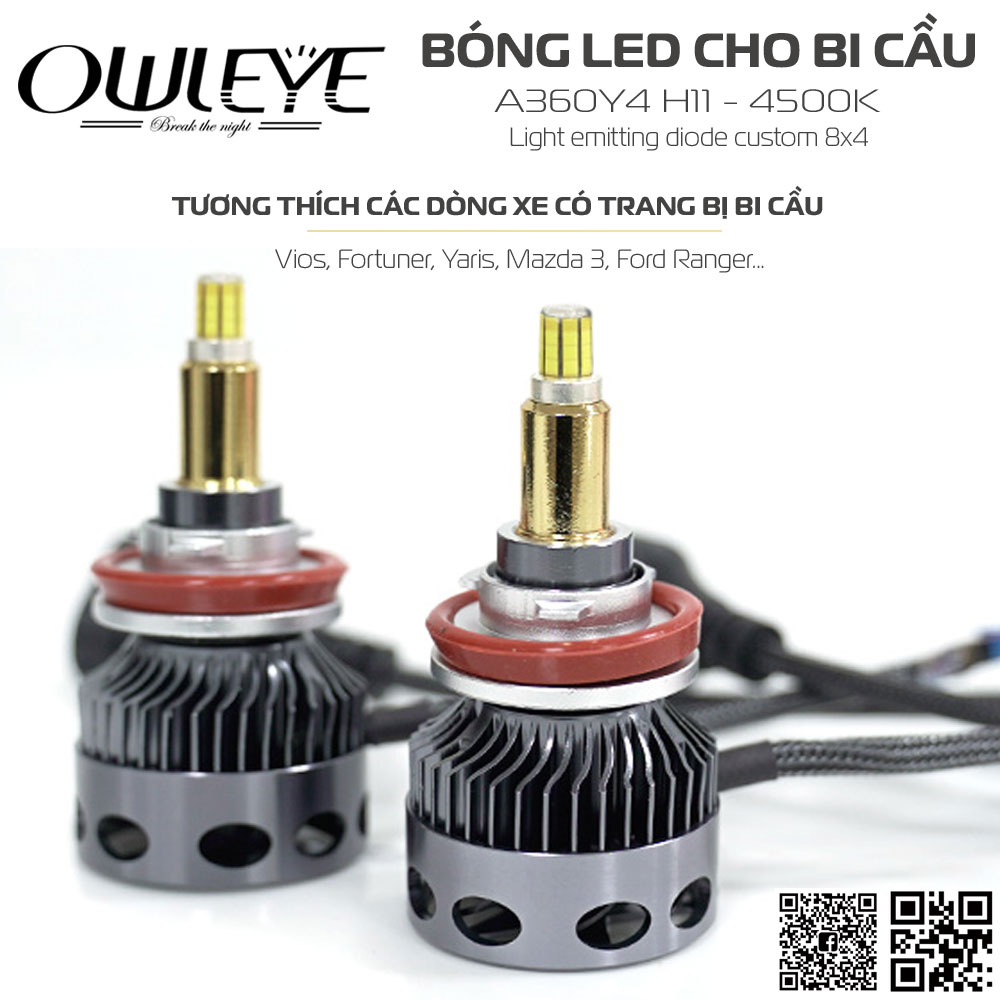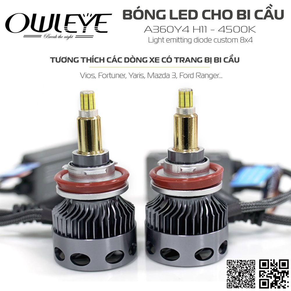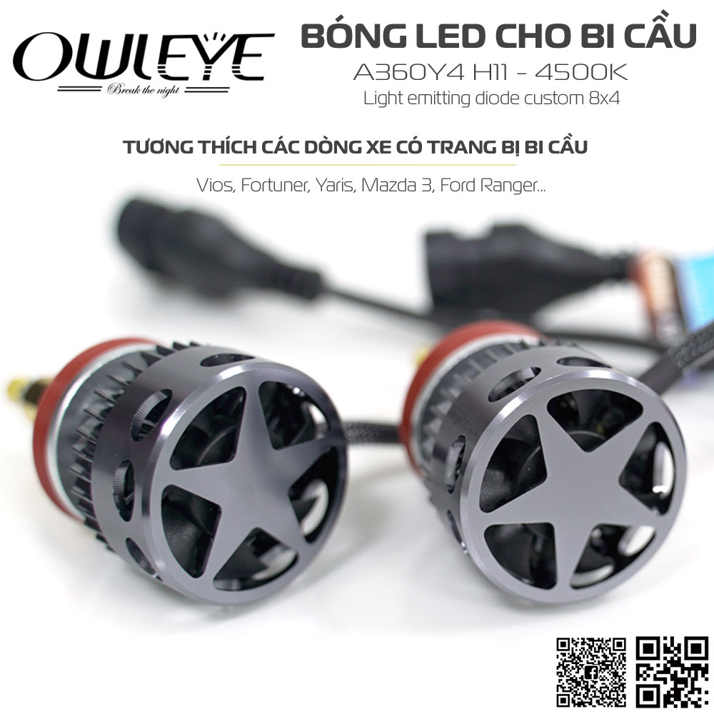 Owleye A360 Y4 H11 là bản cập nhật cho dòng sản phẩm đèn led 360 độ cho bi cầu A360/S3 với cơ chế phát quang trực tiếp. Bản cập nhật này là phiên bản hạ màu nhiệt và sẽ được hệ thống phân phối bán lẻ vào năm 2023.