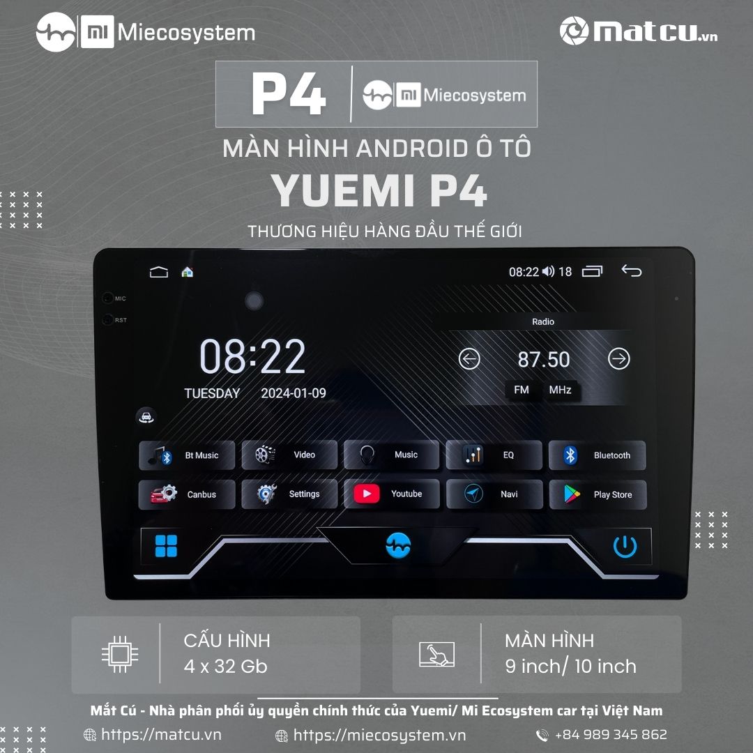 Mọi thông tin về dòng sản phẩm Màn hình Android ô tô Yuemi/ Xiaomi P4 quý Anh Chị có thể liên hệ trực tiếp với Mắt Cú để được hỗ trợ và đảm bảo các chính sách bán hàng, hậu mãi từ Xiaomi. Mắt Cú là đơn vị úy quyền chính thức của Miecosystem Car tại Việt Nam để thực hiện các chính sách bán hàng của Xiaomi nhằm đảm bảo quyền lợi cho người tiêu dùng. Theo dõi chúng tôi trên Fanpage hoặc kênh Youtube để cập nhật những thông tin mới về sản phẩm và chương trình khuyến mãi hiện có.